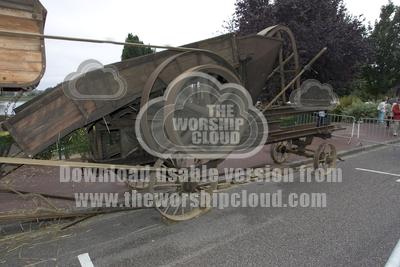 Threshing machine drive by steam engine for powering at Ciider Fayre, Caudebec-en-Caux on River Seine near Lillebonne, France