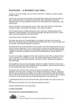 A dramatic monologue in which Peter remembers and reflects on the Ascension and then challenges us.