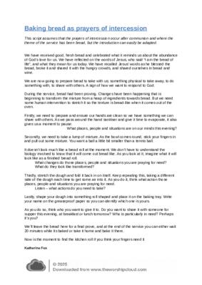 A full script to guide the congregation through kneading bread to pray for others. The bread can be baked at the end of the service so worshippers can take their roll with them and give it away to others