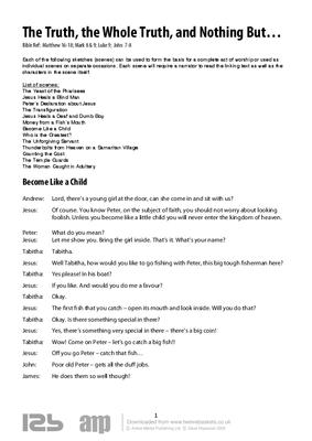 Each of the following sketches (scenes) can be used to form the basis for a complete act of worship or used as individual scenes on separate occasions. Each scene will require a narrator to read the linking text as well as the characters in the scene itself.