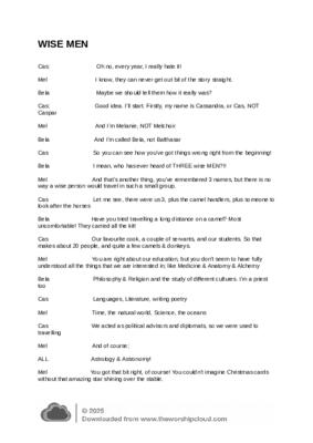 Christmas - have you ever heard of THREE wise MEN?! Overcomes the problem of too many male parts at Christmas by imagining that there were 3 women instead, correcting our misunderstandings of the magi as to their jobs, gifts, method of travel.