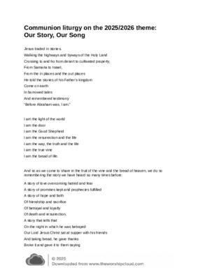 A liturgy for the Great Prayer of Thanksgiving inspired by the 25/26 theme Our Story Our Song