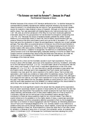 Whether because of the volume of NT literature attributed to him,1 or whether because his correspondence probably represents the earliest canonical witness to the impact of the Jesus movement, it is unsurprising that one looks to Paul as potentially the most valuable source for material or data relating to Jesus of Nazareth…