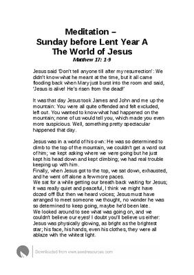 Meditation – Sunday before Lent Year A