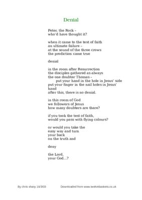 Poetic reflection on Peter's denial of Jesus.