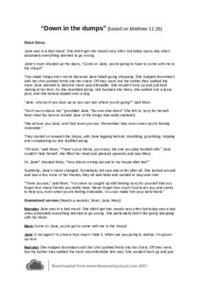 This is a short simple reflection on an everyday incident, suitable for use as a short address. A drama version is also supplied. The accompanying meditation draws attention to the availability of Jesus as our carrier and can be used as a prayer to lift our spirits.