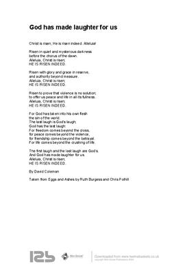 Taken from Eggs and Ashes by Ruth Burgess and Chris Polhil. Click here to buy.