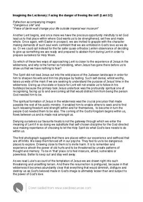 Imagining the Lectionary: Facing the danger of freeing the self  (Lent 1C)