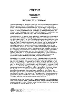 This odd little parable in Luke gives us the key to all of today’s readings: they are about faithful endurance. The story of the judge and the woman is vivid and full of little ironies. The contrast is set up between the judge, who has all the power on his side, and the woman, who doesn’t even have a male relative to do her pleading for her, and so is at the bottom of the pecking order. All the same, by sheer persistence, she gets what she wants. The judge, whose title and position arise out of the need to administer justice, doesn’t actually care about justice at all. He just wants a quiet life...