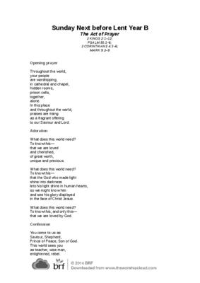 Sunday Next before Lent Year B