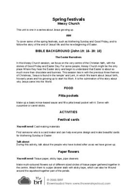To cover some of the spring festivals, such as Mothering Sunday and Good Friday, and to follow the story of the end of Jesus’ life and the new beginning of Easter…