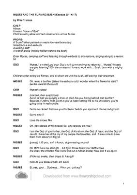 MOSES (startled, then suspicious) Aaron is that you playing a trick on me? Are you hiding behind that bonfire? Because if Jethro finds out that you’ve been setting fire to his shrubbery, you’re going to be in real trouble.
