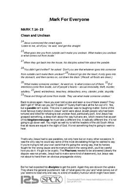 ..Back to jokes again. Have you ever told a joke and seen a row of blank stares? They didn’t get it? What can you do? Explain it? Surely that’ll take all the fun out of it. Yes, but a parable isn’t a joke. This one in particular was no laughing matter. Some of the most famous martyr stories in Jesus’ world were about Jewish people who had been tortured and killed for refusing to eat unclean food, particularly pork. And Jesus has grasped something, a deep truth about the way humans are, which means that as part of his kingdom-message he must take a different line. A radically different line. It’s not going to go down well. You might as well try to tell the leaders of the old South Africa that all races are equal in the sight of God. It’s not something they’re going to want to hear.