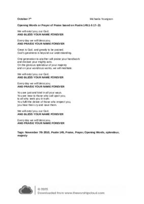 Opening Words or Prayer of Praise based on Psalm 145. 1- 5 17 – 21