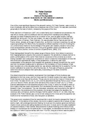 One of the most significant figures of the eleventh century, St. Peter Damian, was a monk, a lover of solitude, and at the same time a fearless man of the Church. He was also committed personally to the task of reform, initiated by the popes of the time…