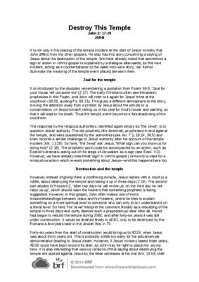 It is not only in his placing of the temple incident at the start of Jesus’ ministry that John differs from the other gospels. He also has this story concerning a saying of Jesus about the destruction of the temple…