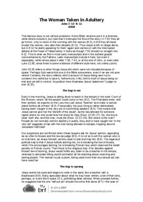 This famous story is not without problems. Some Bible versions put it in a footnote, while others include it, but note that it interrupts the flow of the story…