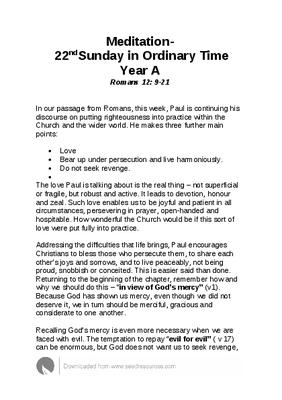In our passage from Romans, this week, Paul is continuing his discourse on putting righteousness into practice within the Church and the wider world. He makes three further main points: