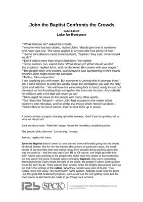 John the Baptist doesn’t seem to have wasted time and breath going into the details of ethical debate. Not for him the learned discussions of particular cases, the small details of law that take time and energy away from actually doing anything about the way the world is – and the way one’s own life is...