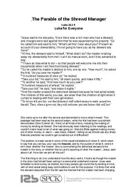 She came up to me after the service and demanded to know what it meant. This passage had been read as the second lesson, while the first had been a prophetic denunciation (from Ezekiel 18, I think) of all kinds of sins, including the making of money by lending at interest. She had obviously been listening to the readings, and couldn’t make head or tail of what was going on. Was the Bible against making money out of other money, or was it – was Jesus, indeed – telling us we should use any sharp financial practices we could to get ourselves out of difficulties?...