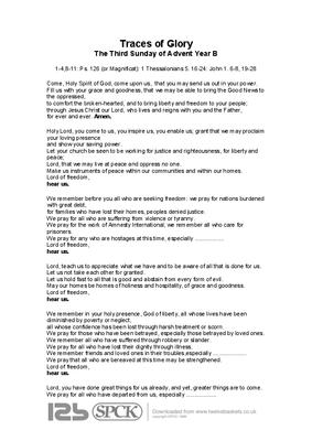 Come, Holy Spirit of God, come upon us, that you may send us out in your power. Fill us with your grace and goodness, that we may be able to bring the Good News to the oppressed, to comfort the broken-hearted, and to bring liberty and freedom to your people; through Jesus Christ our Lord, who lives and reigns with you and the Father, for ever and ever. Amen.